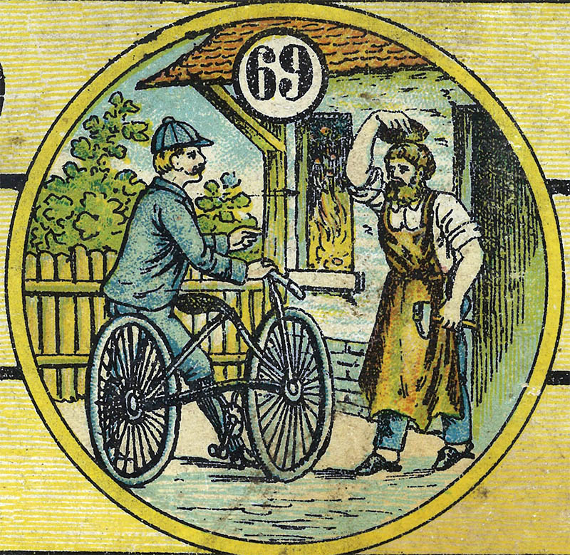 In this game we find a variety of front-wheel-drive bicycles which look quite primitive. In some cases I wonder if the artist depicts the bicycle correctly.