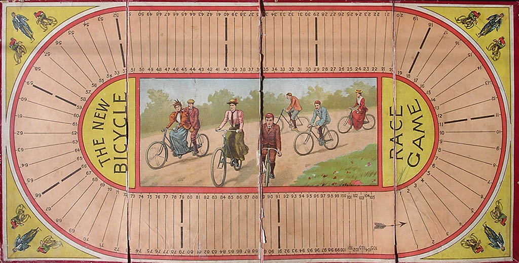 Early unbranded English (well, at least I bought it in England) game. It might be a XIXth-century game or very early XXth century. Hard to tell, since I just have the board. No riders, no rules. Any piece of information is welcome.