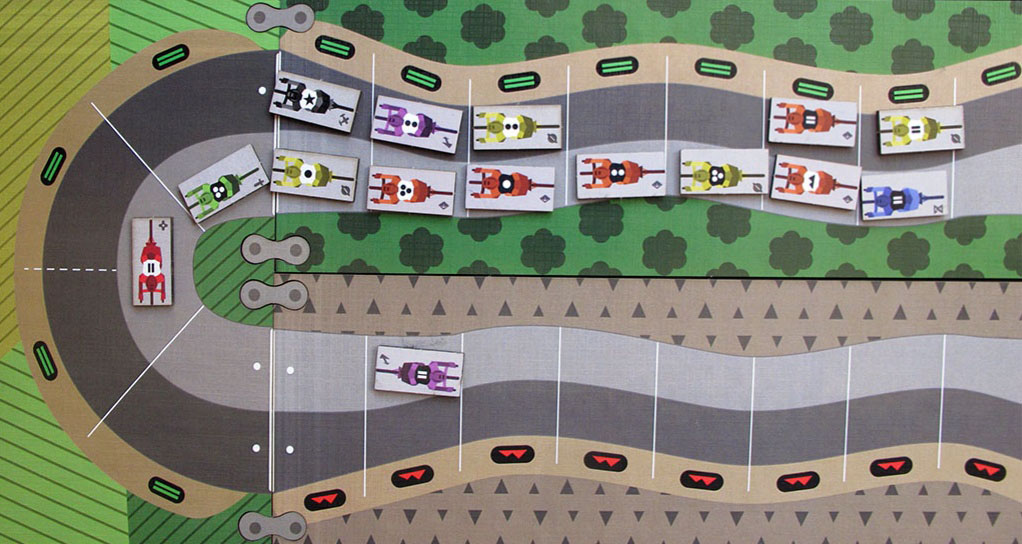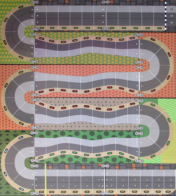 The board is modular, of course. Here is a sample path for a short (60-minute, according to the rulebook) race.