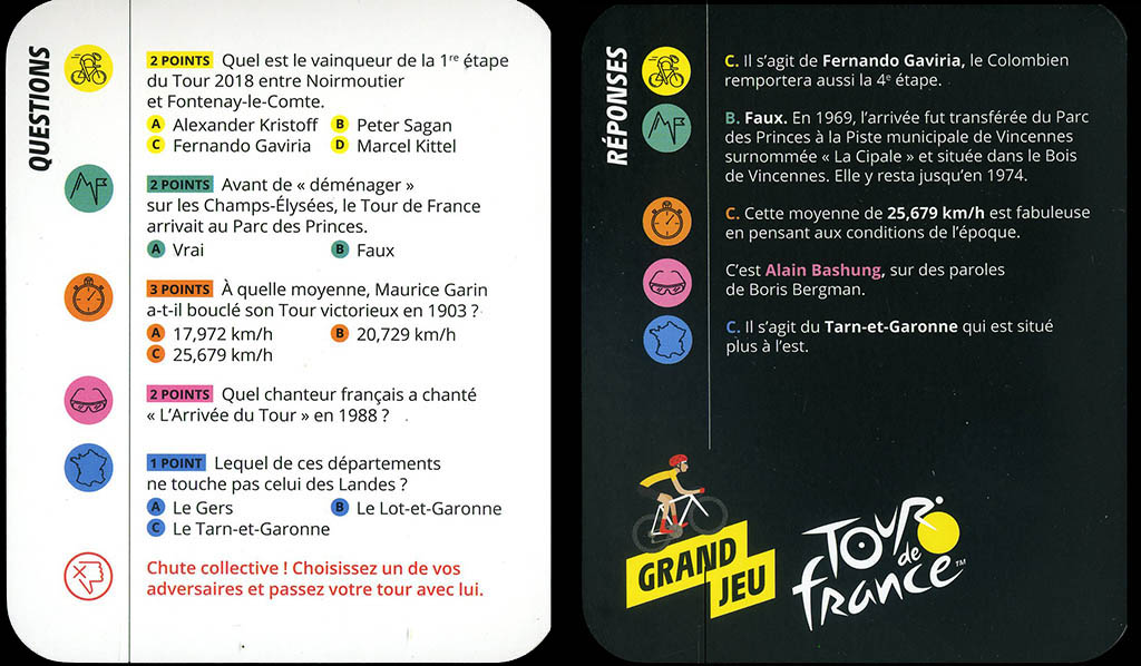 6. Au top/Défaillance : défis et bonus ou malusAs you can see, the game is not only 100 % language dependant, but also heavily dependant on your knowledge of French culture, as there are many non-cycling questions.