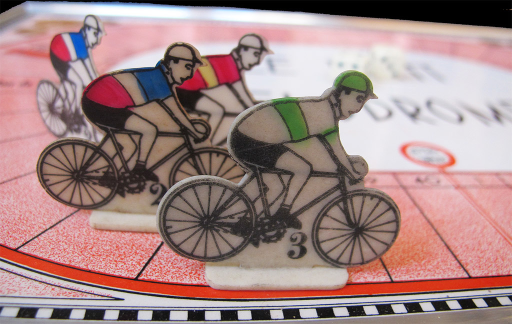 As for the rules, I can only talk about those of the Tour de France game, but we can assume that those of the velodrome games are fairly similar. The rules are very simple. Basically, you throw two dice and advance your rider accordingly, but the count is as follows: