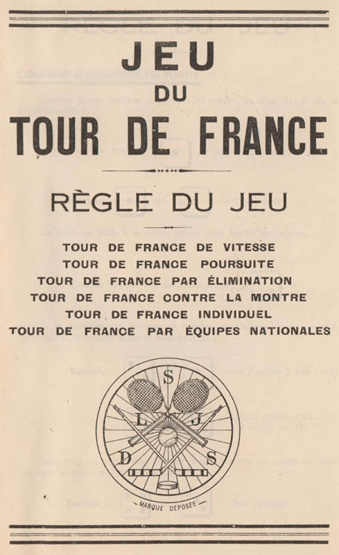 On the one hand, my friend Didier Maria has found not only different boards but also different scoring pads, the rules of the Tour de France game, and a leaflet by SPORLUX featuring three of the four known cycling games, plus two other sport games. By the way, part of the pictures featured on this page are Didier's.