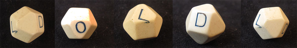 In the boxes found by Loïc there were a few tennis players, scoring pads for the tennis game, and these strange 14-sided dice with only three faces inscribed (with letters "O, "D", and "L"). As far as I know, they do not belong to Le Petit Vélodrome but might well be part of the tennis game.