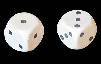 PIGNONFIX is a dice game, but one that does not use regular dice, but a pair of modified D6 instead, with values 112233. I admit I am responsible for not offering a model of these dice for download. I talked him off doing it since cut-up cardboard dice suck. Therefore, you will have to customize a pair of dice with stickers and a marking pen, or just use two regular dice and remember that 4=1, 5=2, and 6=3. (Spoiler: I did it, and then decided it was better to use stickers).