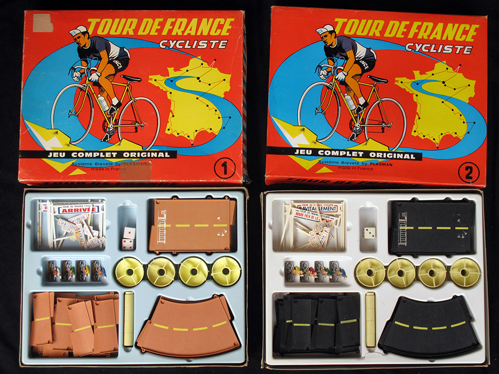 UPDATE MAY 2020: Scroll down to the bottom of the page for more details on the different boxes.A part from the road segments and the color and shape of the riders (different in every box I have seen so far, see below), there aren't important differences between the contensts of the twq boxes.