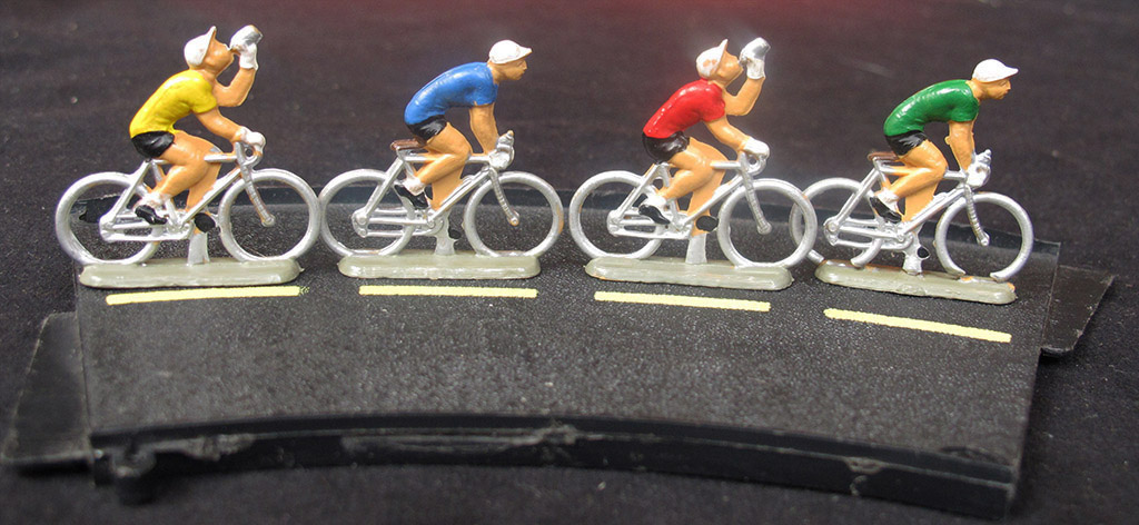 These riders come from one of the boxes in the Pierre & Bilou collection. Notice the drinking rider (again, in a plain yellow jersey).