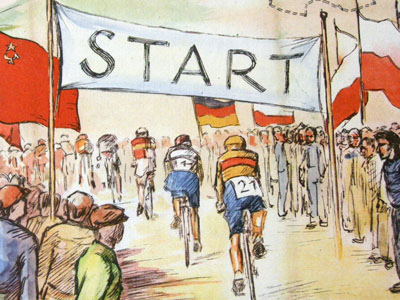 Game from the former Esatern Germany. I took the pictures from François Cardinet's collection. Of course the Prag-Berlin-Warschau race is the Peace Race, also known as Friedensfahrt as you can see on the game's box..
