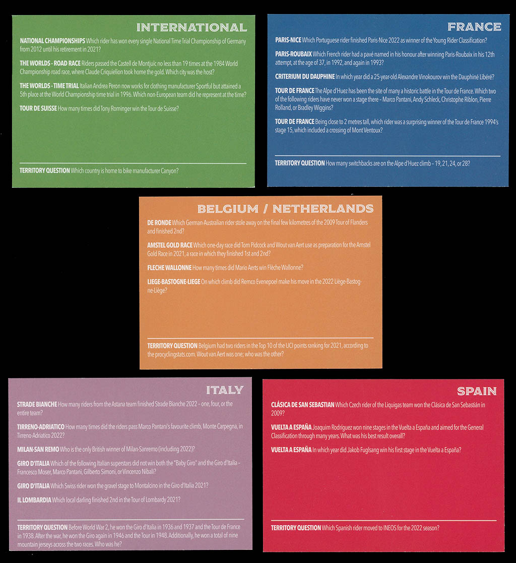 I have written many times that I do not particularly like quiz games. It is not that I profoundly dislike them (I have quite a few in my collection) but I am not attracted by them. Displaying who knows more about a particular subject is not my idea of a funny evening. This said, some of these games are better than others, and if I had to keep only one cycling quiz game, this Pro Cycling Quiz might be the one.