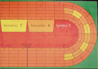 Frank Schaubrenner has sent me a couple of cycling games' prototypes which he felt belonged to my collection. One of them is a box of  "Ausgetrickst..." which contains, again, a cycling game. It is the same cycling game, just that this time there is only the track cycling part of the game (and it is called "Velodrom").