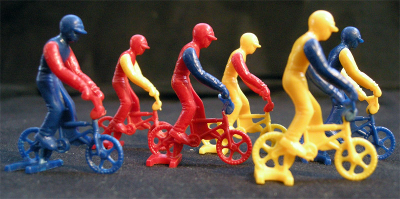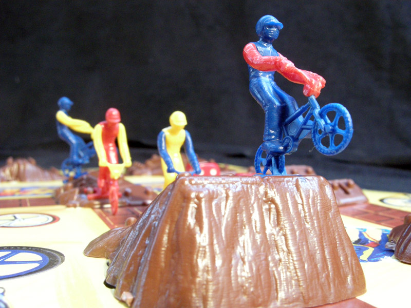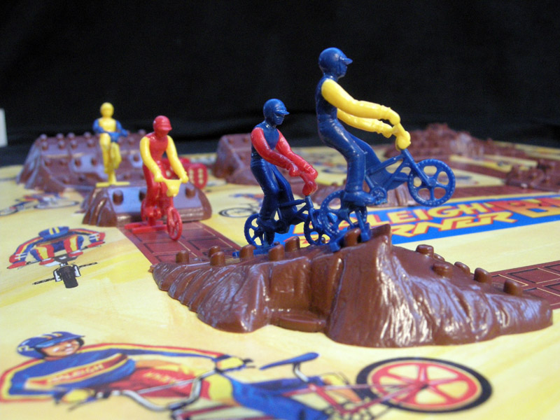 A beautiful BMX race game with an unusual 3D board. Meant for children aged 7 to 15, the game is worth a try just for its components. (The only other 3D board in the collection is El Juego de Salón Vuelta a Ciclista a España, but of course these games are not on the same league)