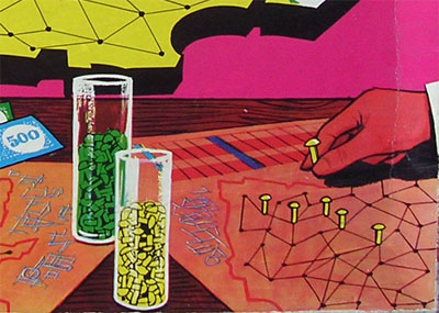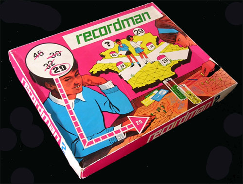 Note that the cyclists in these pics are not in an actual playing position (there should be one on each board, and the board should be dotted with pins). Since we are in the "nasty remarks" part, note also that the colour of the board is not faithfully represented in the pictures. The real color is somewhat orange... er, pink... er, kind of salmon color.