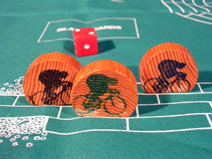 The cloath board does not help the (roughly made) riders' stability, but gives the game a distinctive look.