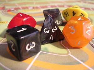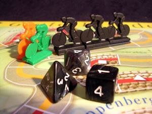 Nevertheless, the game mechanics are not so interesting. There are three levels of play, so that younger children can enjoy the game too (level 1 is marked " 8 years", level 3 is marked "12 years"). Level 3 is supposed to be quite a tactical game. But despite all the different dice and cards, it's just another dice-based race game intersped with some luck-drawn tactical cards.
