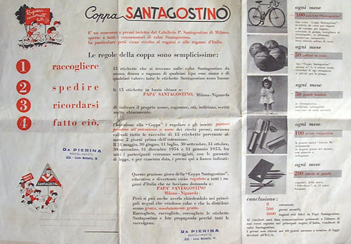 PS: I am not really sure if Santagostino organized a children's bicycle race or just a lotto with some bicycles as a price. In case anyone is interested, the company was founded in 1876 and still exists (www.santagostino.com)