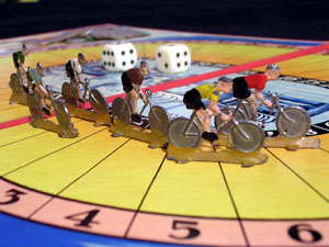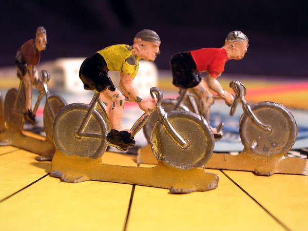 The best thing of the game are the six tin cyclists.
