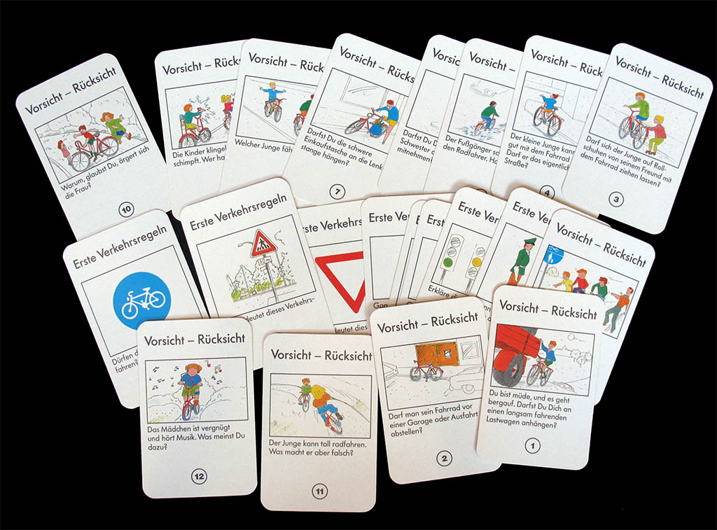 This is a German kids' game about cycling security. It is not a game about cycle racing and therefore it is in the limit of what I should include in this website, but since I have a cyclo-touring games' section, I guess I can include it.