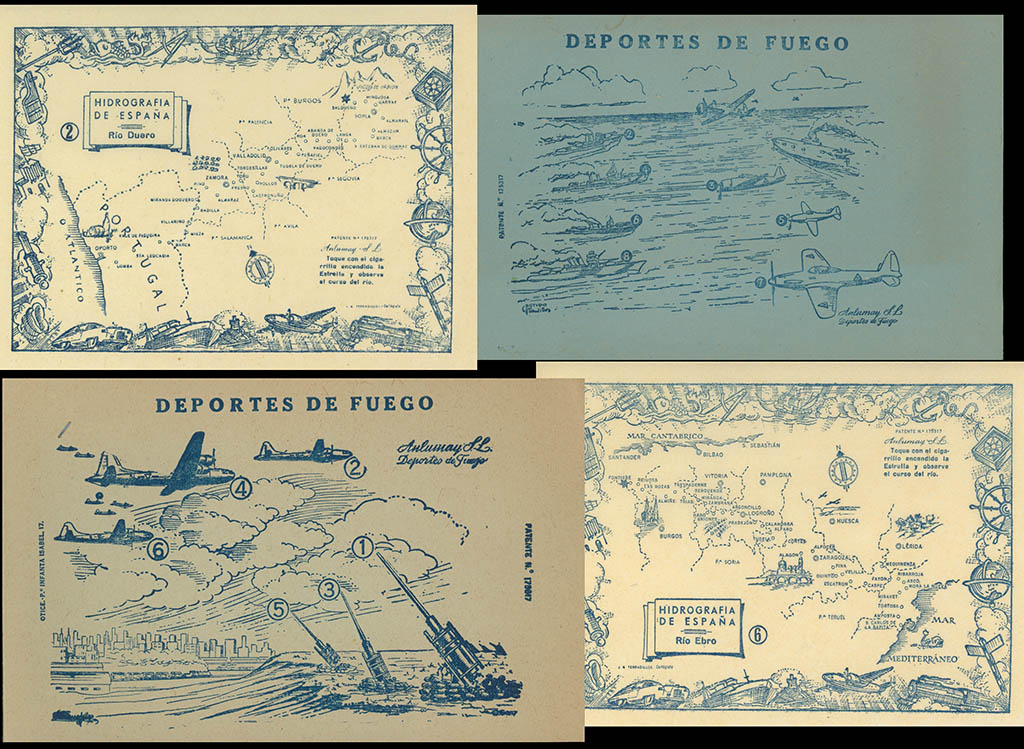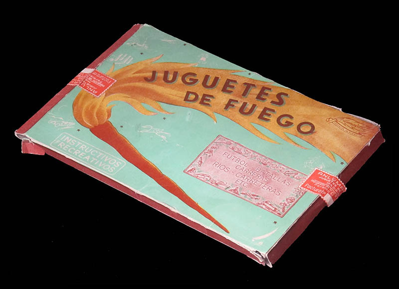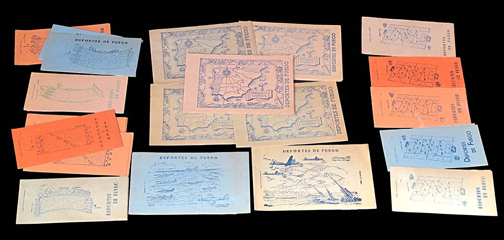 This is a box titled "Juguetes de fuego" (fire toys), which not only has sports games in it but also educational maps (with the course of eight different Spanish rivers) and a few war-based games. Inside the box, all the games (including war and geoghraphical games) are marked "deportes de fuego" (!!!)