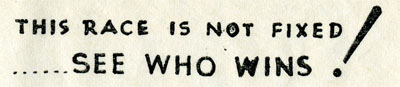"The race is not fixed" but in case you want to bet on the outcome, don't: I also says "for amusement only"