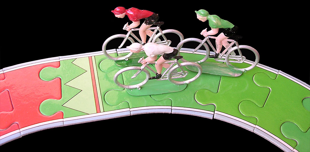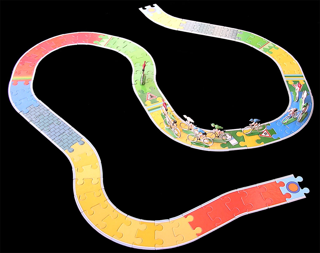 The best about the game is that you make your own track. With 114 pieces, 4 kinds of sections & some optional surprise elements, you have everything you need to make a multi-stage race. I would say this is a perfect buy for cycling game developers. Forget about the rules and use the elements of the game to build your own.