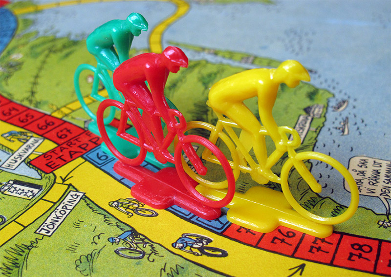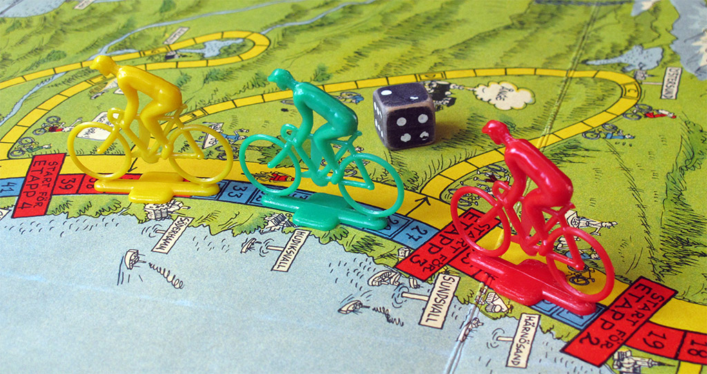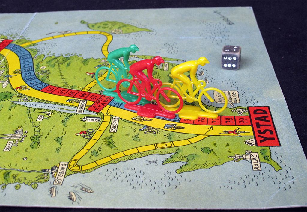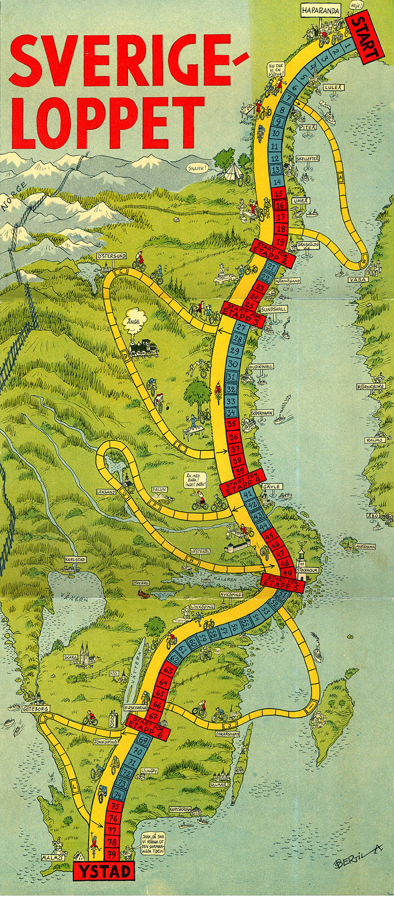 This game represents a six-stage Tour Of Sweden. Of course it is not the later Postgirot Open, which was held from 1982 to 2002, but the Sverigeloppet that was held between 1951 and 1965. I have not been able to find much information about this race, and most of it is is Swedish, but it was an amateur race that was very popular in Sweden. Probably the most well-known edition of the race was the first, in which 66-year old Gustaf Håkansson completed the race after being refused the inscription because of his age.