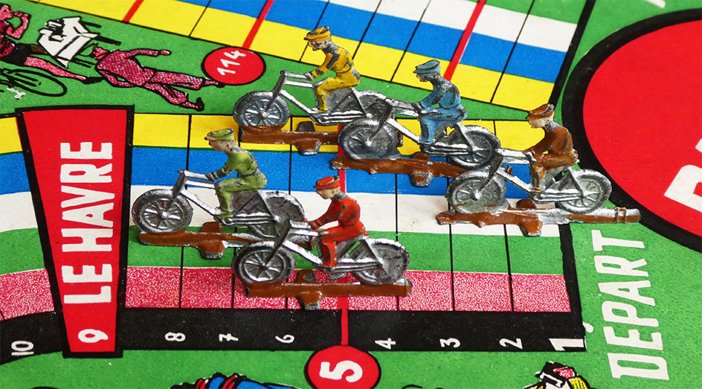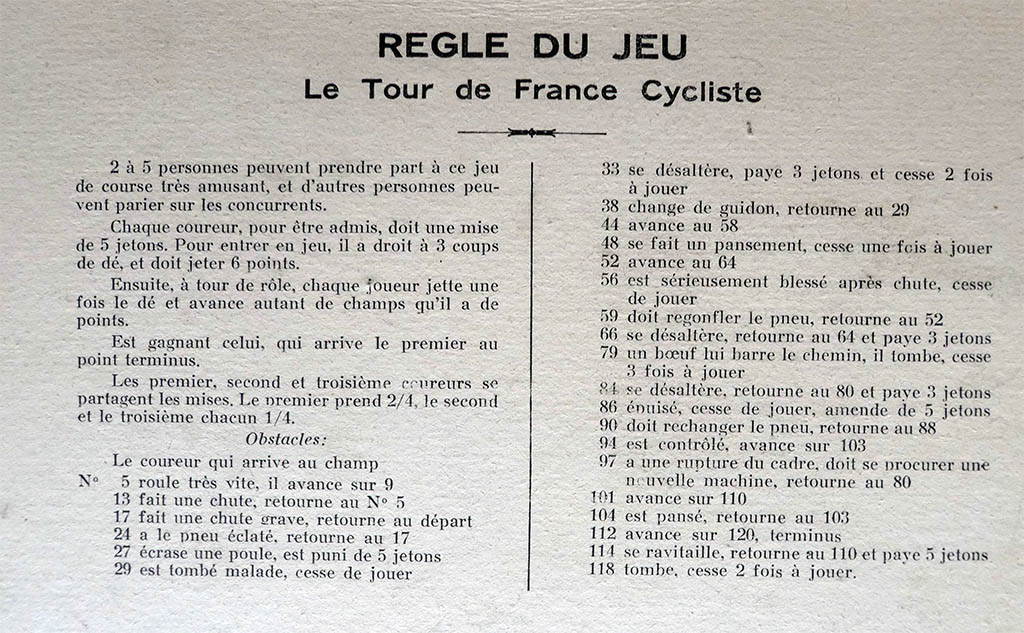What has not changed between the two versions of the game is the Pelissier look of the riders. Of course, 1923's Tour de France win by Henri Pelissier was the first by a Frenchman since 1912, which made him a national hero; that was possibly a good reason to release a Tour de France game. (As is widely known, the 1924 Tour de France did not go so well for the Pélissier brothers: it is the Tour when Albert Londres interviewed them for the infamous article "Les forçats de la route" after they retired from the race).