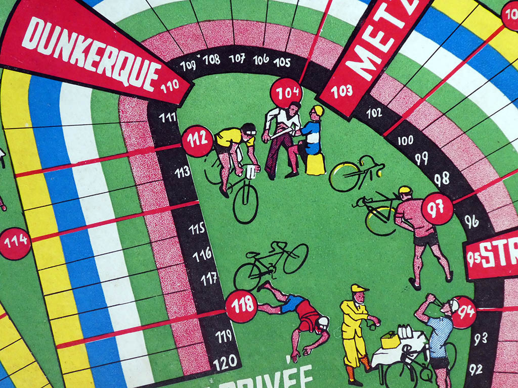 It can be generally assumed that if a game follows exactly the stages of a particular edition of a race, the game was published, or at least designed, in the year that race took place. Why would anyone design a game based on last year's race if it can be based on this year's? However, we must keep in mind that the process of designing, publishing, and distributing a game may take a few months, while the stages of the Tour might only have been announced a few weeks before the start of the race. While it is sure that a game based on the Tour of 1924 cannot have been designed before the stages of that year's Tour were known, it is only (highly) probable that the game was designed before the stages of the next tour were announced. There are many reasons why the release of a game can be delayed.