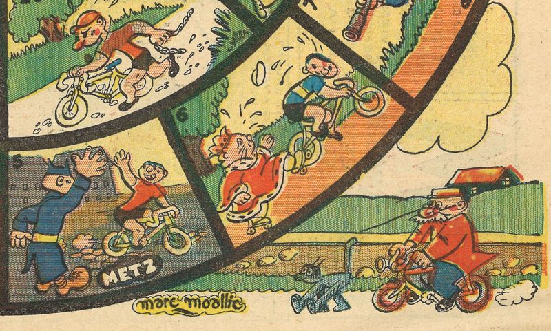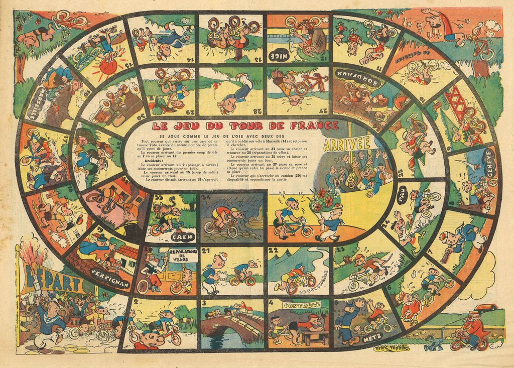 This game is found inside the July 1st issue of Le Journal de Toto. The magazine was not a long-lived one (it folded in May 1940 as the German army invaded France), but they had time to include at least another Tour de France game in December 1938.