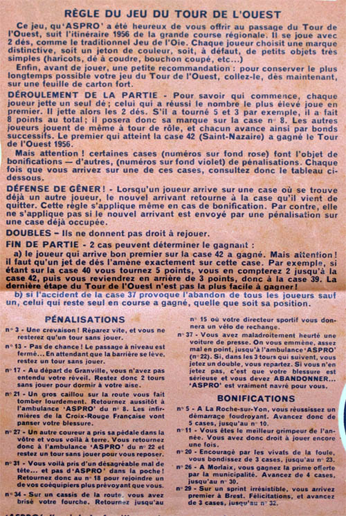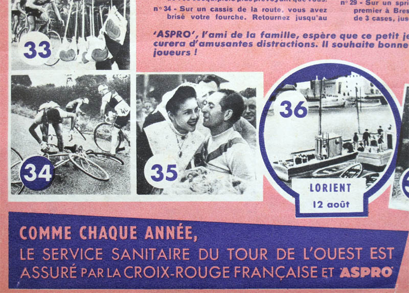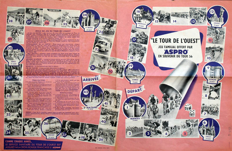 This game about the Tour de L'Ouest was offered by Aspro aspirins. They offered a similar game (together with L'Équipe) for the 1961 Tour de France.