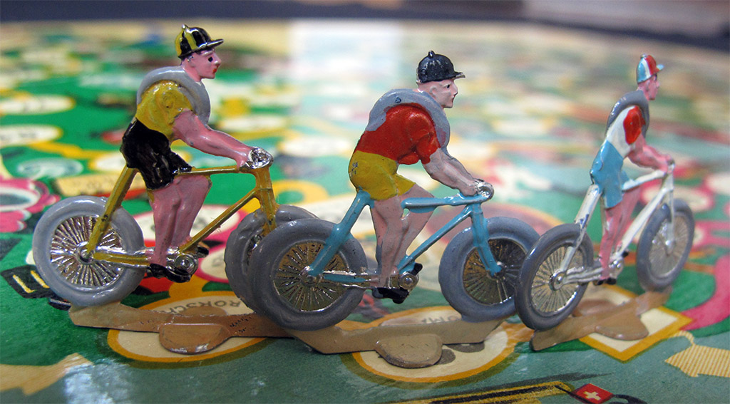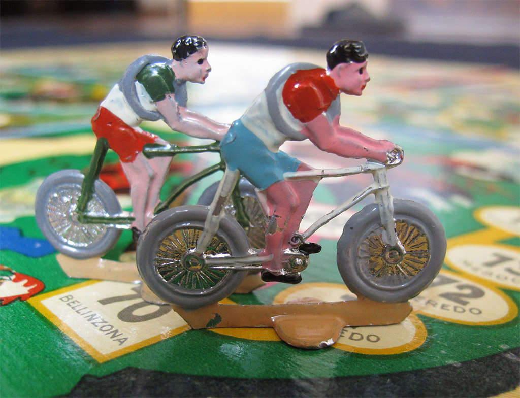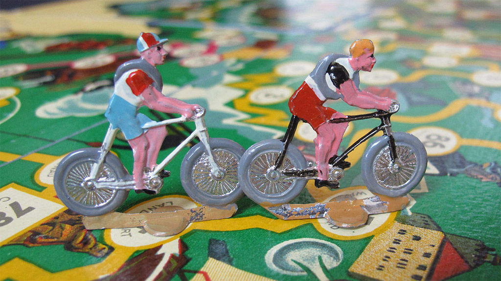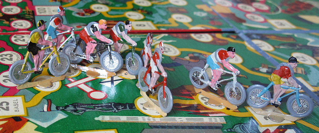 The rest of the rules are basically the same in the two games. With one rider per team it is a simple roll-and-move game. With larger teams at least you have the choice of which rider you want to move, which gives the game a (small) tactical edge. Nevertheless I will keep this game in the game-of-goose section of the site.