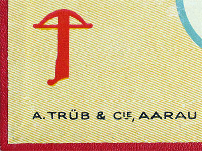 Apart from the color difference between the two boxes, the box on the left just has the crossbow logo while the one on the left has also Hoffman's logo on the bottom right corner. At first, I assumed that the crossbow logo was the printer's (Trüb) logo, but my friend Siegfried tells me that this crossbow logo is the Verband Schweizer Woche (an association whose aime is to promote Swiss made products) logo. I guess he is right.