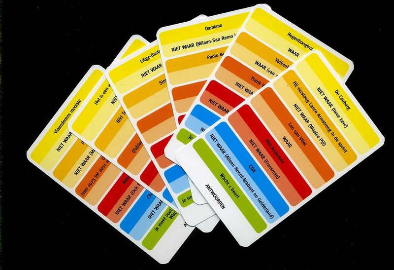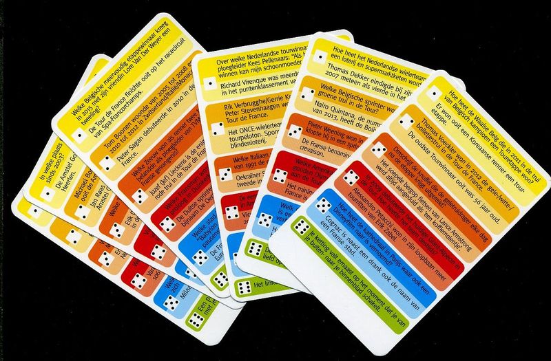 Each player has a team composed of 4 riders at the beginning of the game. They lose one of them if they do not give the right answers. Nevermind, quiz games are not board games (IMHO) even if they have a board. Who cares about the rules? The only possibly interesting thing is to answer the questions...