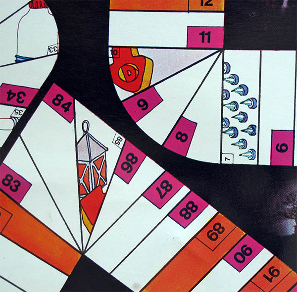 This is one of the biggest (and I must add, ugliest) games in my collection. The box measures 50 x 60 cm, and the board 100 x 60 cms. An unpleasant feature of this game is that the riders are outside the box (as you can see), so once you have thrown away (or simply torn) the protective plastic, there is no easy way to store the game. I have been told that some sellers, after a while, simply sold the riders and threw away the rest of the game. I do not blame them, buttThat may be the reasoon why this game is quite hard to find nowadays.