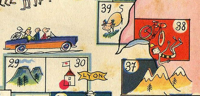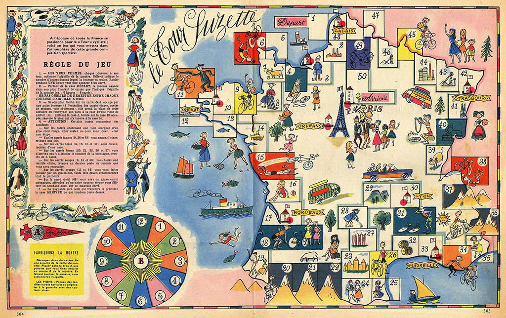 The fever for the Tour was so hot in France during the 50s that even girl's magazines like "La Semaine de Suzette" offered cycling games.