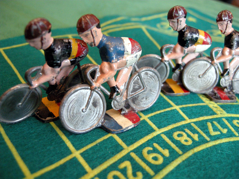 joue de 2 à 12 joueurs. Chaque joueur prend un coureur et le place à la ligne