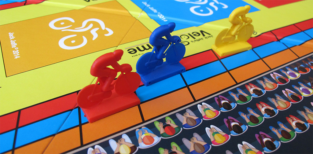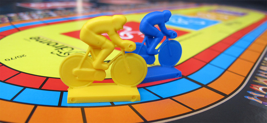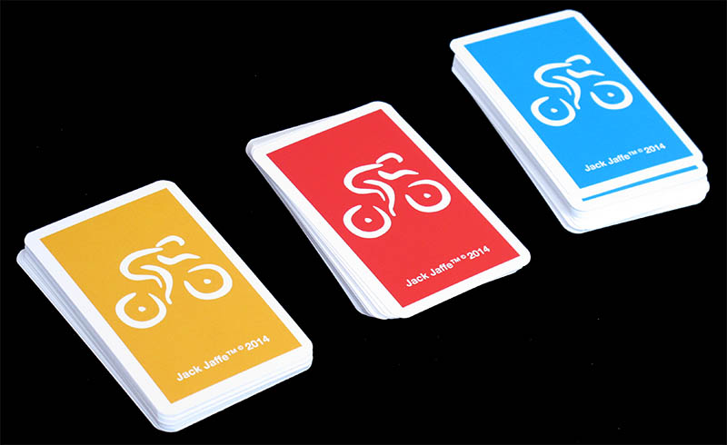 This game has some interesting and unusual features. This is the least you can expect from a game author that has not done his research and does not know the other games that have been published. Supposed to be a "strategic cycling game with an unique push and pull me system", it does not use dice, but the players have a deck of cards each instead. The three decks are slightly different. This means that every player has a different deck but all three decks are of equivalent strength.