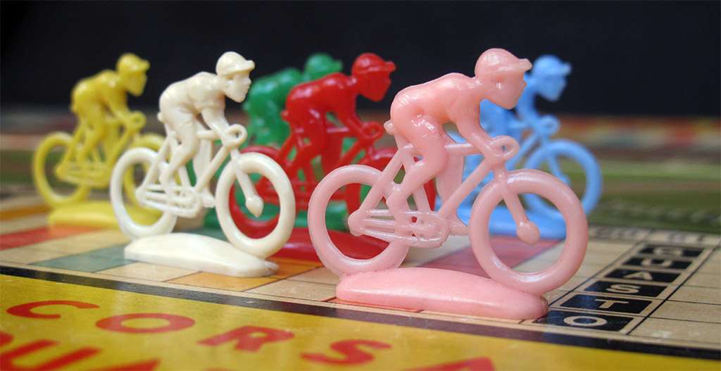 If the cyclists are quite small, the motorcycles are even smaller. They measure just 26 mm. Of course, they look quite weird. By the way, there are two motorcycles missing in my copy of the game. I cannot play the paced race with fife or six players...