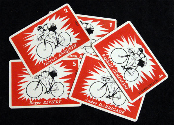The game also featured collectible cards for the 14 cyclists. There were three cards for each rider, and they were supposed to be given as a prize to the player who won the game with that particular rider.
