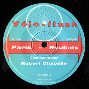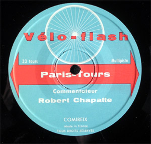 "Jeu Sonore des deux grandes courses cyclistes. Commenté par Robert Chapatte. Paris-Tours, Paris-Roubaix". This one includes an aleatory record (see below), which is enough to make it one of my fetishes, even better than Les 45 Tours de France .