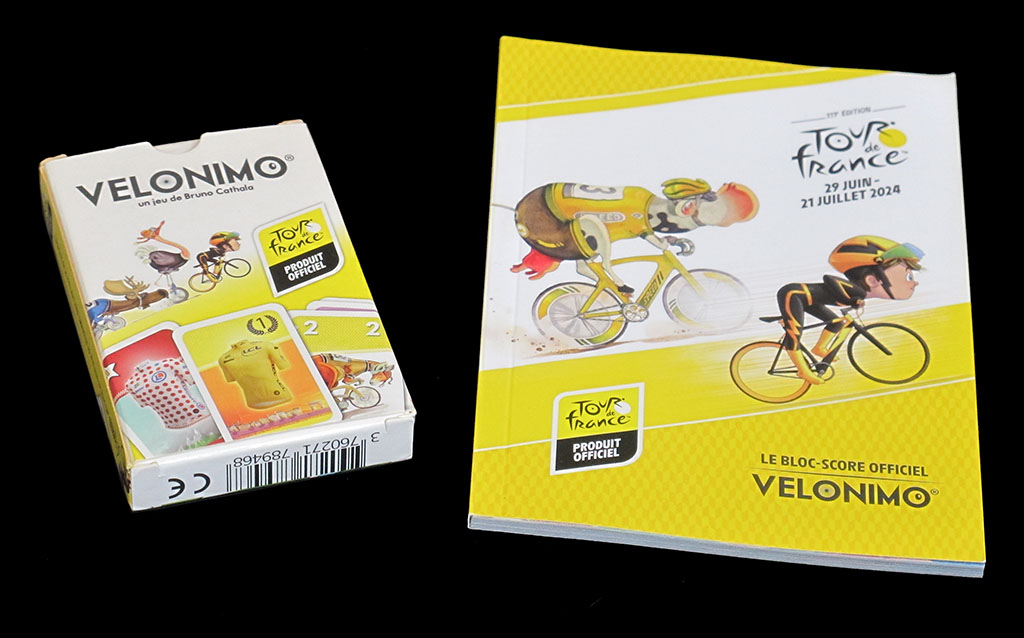 The Tour de France deck, released in 2023, is not an expansion but a somewhat simplified version of Velomino. It is an officially licensed Tour de France product, as is the 2024 "Bloc-Score Officiel", which can be used with either the complete version of Velomino or with this reduced Tour de France edition.