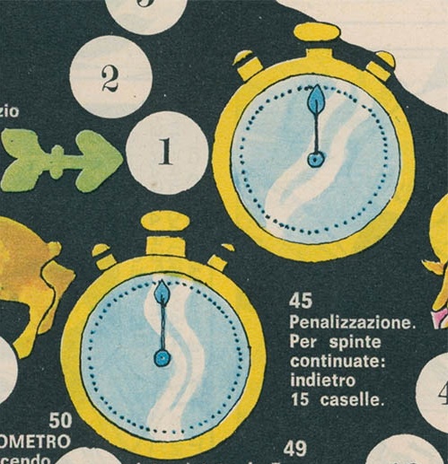 If you fall on square 50, you go back one square to be interviewed by a certain Enzo Balboni. I have tried to find more about him, but I have not discovered much, except that he had written some cycling articles for Il Vittorioso before and that he wrote a cycling novel some years later. Maybe he was not that famous after all, and his presence in the game is just an internal joke. I wonder if my Italian friends can help me with that.