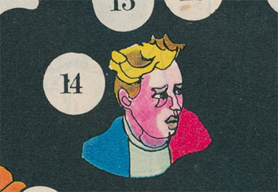 Despite not having retired yet, Jacques Anquetil did not participate in the 1968 Tour de France (just as he had not the year before), which does not prevent him from appearing on the game. The rule for square 14 is: "Breakaway with Anquetil. Move five squares forward".
