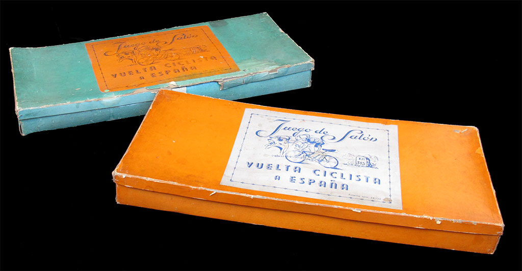 The cyclists are painted in different colours (the riders in the third box I saw had lost almost all the paint, so I cannot say). As you can see the cyclists in the first picture (green box) are painted more delicately. My guess (and it is only a guess) is that they were made first, that is, that the green box is the first edition. Of course that may be a biased deduction based on that it was the first I got.