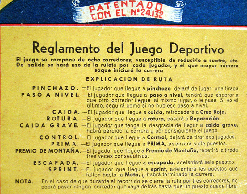 The rules of the are very simple. Even if you don't read Spanish you can see it by their length.The only not-so-usual feature is that three riders in parallel block the road. It does not state if they also block the road in case of a rider going back to a previous square (from "Caida" -fall- you go back to the Red Cross square; from "Rotura" -wreck- you go back to "reparación"). I guess they don't.
