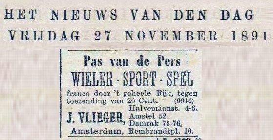 To which Rob van Linden clarified: The game is definitely from 1891, showing from an ad in several papers that mention the first edition of the game in that year. The ad is included in the HONGS-record. 'Pas van de pers' means: just released.