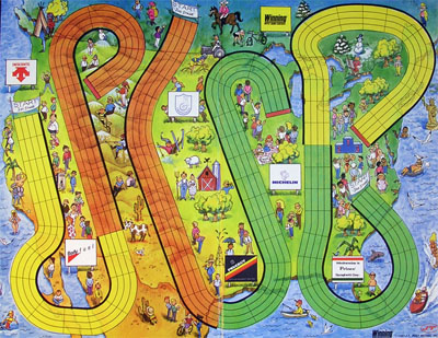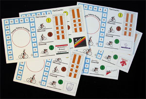 American game, a copy of "Maillot Jaune (Le jeu de Bernard Hinault)", which, by the way, is not one of my favourites. This is the only game I know to include female riders. Though the game is supposed to be for 2 to 6 players, twelve riders are included, six men and six women.