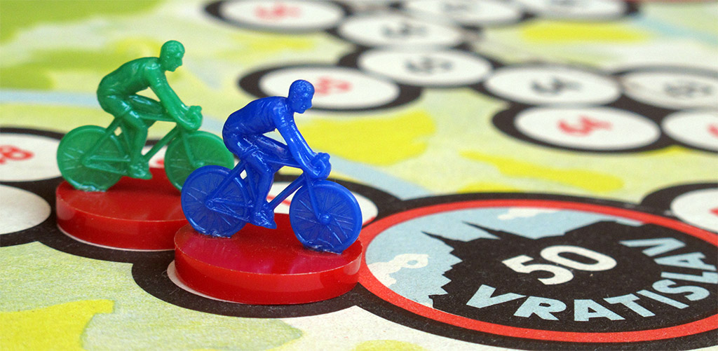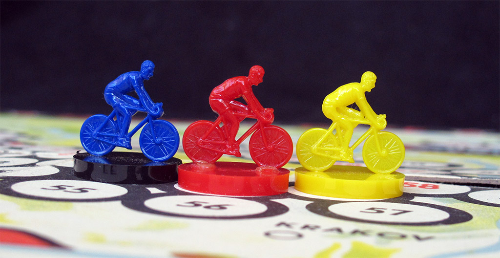 This is an unusual Czechoslovakian game that represents the Peace Race (in Czech: Závod míru, also known by its German name, "Friedensfahrt or by the French "Course de la Paix"). As you probably know this race was a stage race held in Czechoslovakia, East Germany and Poland. It was "the world's biggest amateur cycling race". The first edition was held in 1948 and the last in 2006, but by then the race (and the world) had changed a lot.