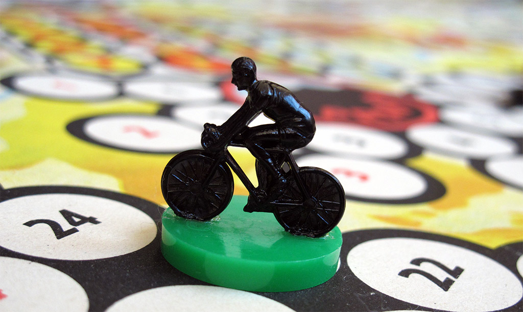 There is a previous version of the game, from 1955, in which the riders were not there yet. Instead of riders there were circular pieces as you can see in the picture above (found on the internet, published with permission - thanks Mike!).