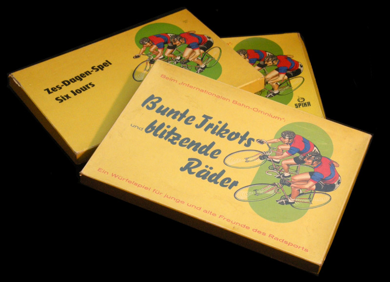 Both the 1959 german edition, by VEB (K) Kartonagen und Bürobedarf and the "belgian" edition feature the blue board (in the german edition it says "INTERNATIONALES BAHN-OMNIUM" instead of "INTERNATIONALE SIX JOURS").