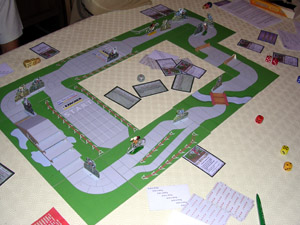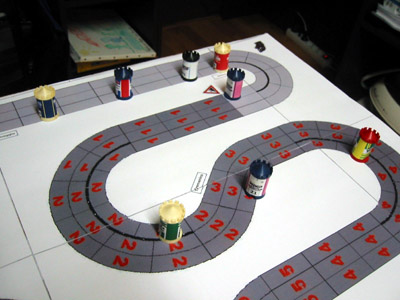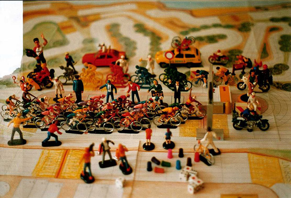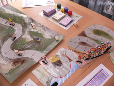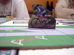 Baroudeur is an abandonned project form my friend Yann (from Paris). Baroudeur, actually, was an unfinished but playable set of rules to be played in almost any board. (even in a game-of-goose's board). However, Yann changed his mind and devoted his energies to his fantastic PBEM Tour de France game (http://fr.groups.yahoo.com/group/jeutdf/).I am not really sure if Yann wants his rules posted here, so I keep them to myself for the moment :-(