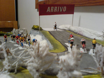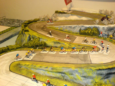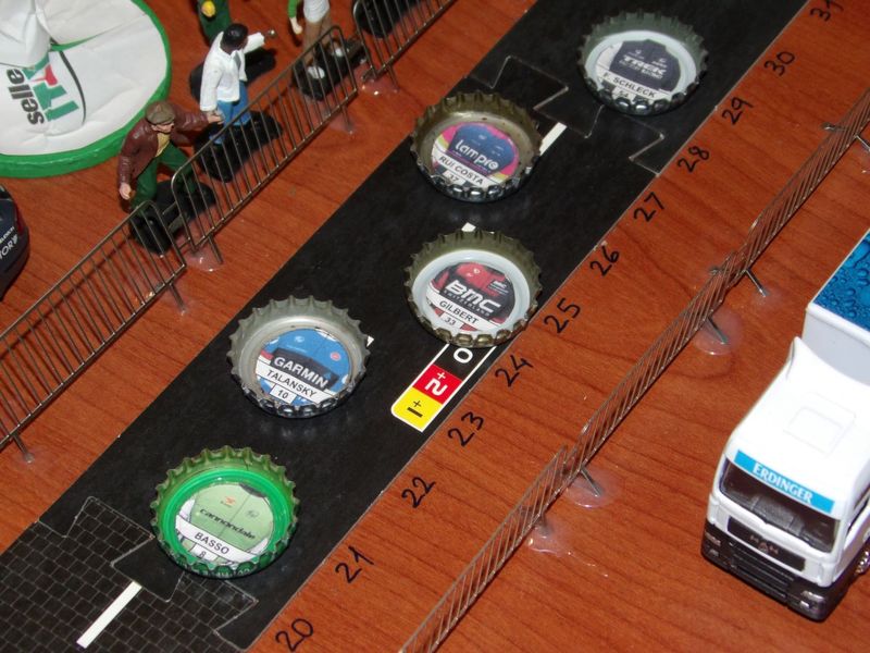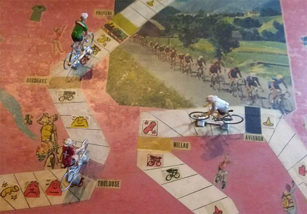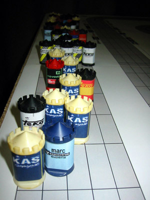 Not really a game but an idea from the Dutch online magazine SPELMAGAZIJN to play the different stages of a race with different games. If my Dutch does not betray me, the mountain stages were played with HOMAS TOUR, the flat stages with DER AUSREISSER and the time trial with some computer game. A nice idea!